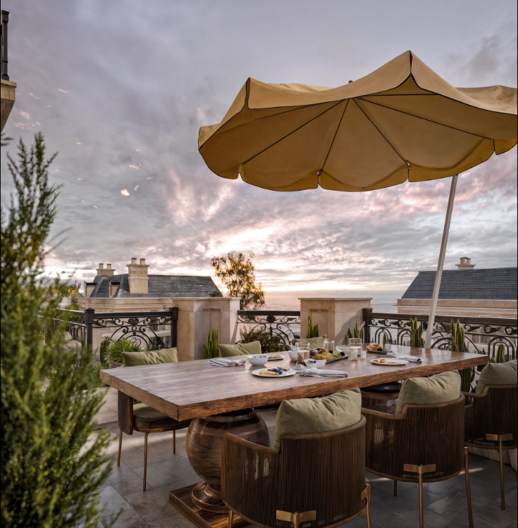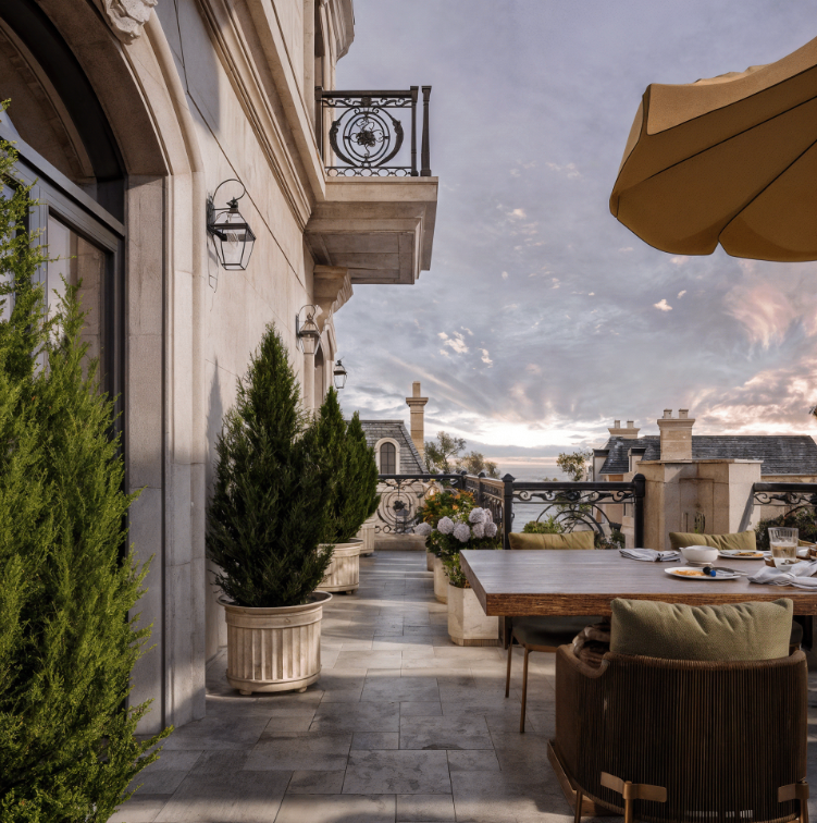 Continuity Between Indoor and Outdoor – The large floor to ceiling glass doors and neutral colours create a smooth and seamless flow from inside the room to the balcony.
