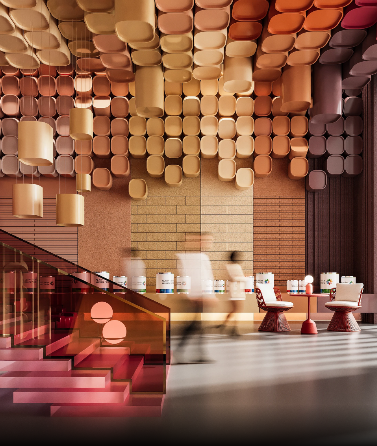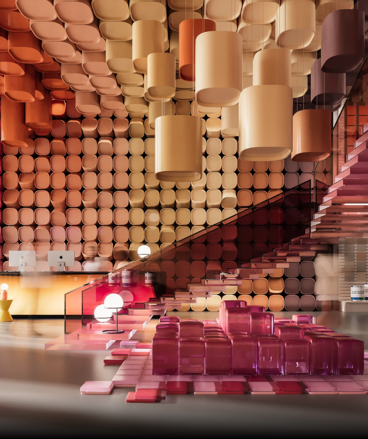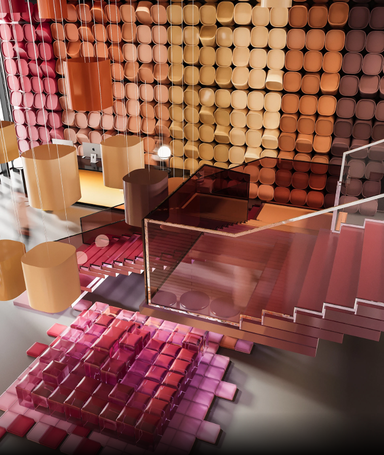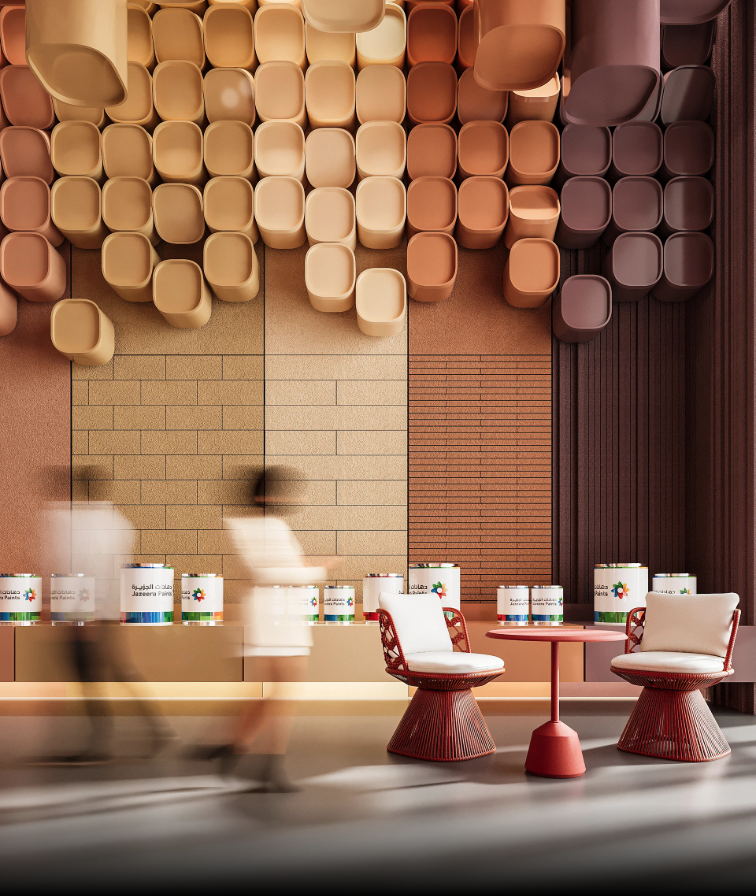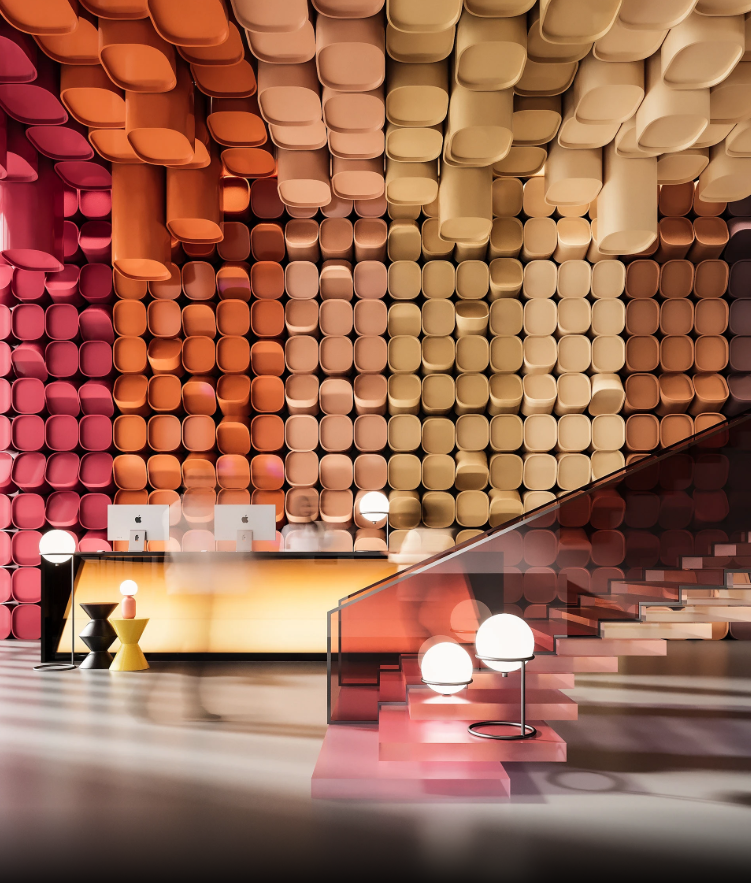 Brand Integration: The fluted wood accent wall can be used to display your company logo, creating an elegant backdrop and an unforgettable first impression.