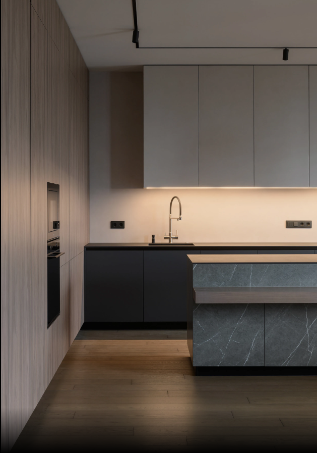 Seamless Integration: Using Gola-style handles with a flush-fit design creates an aesthetic that is consistent in style with the rest of the living area.