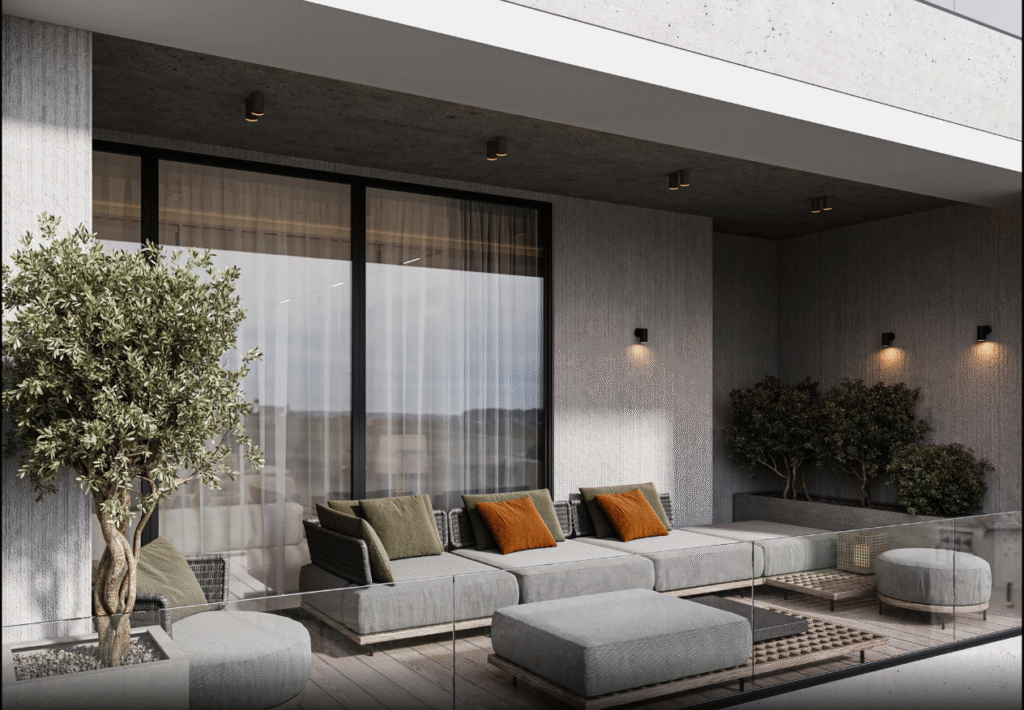 Wall Finish: Ribbed Concrete / Textured Plaster.