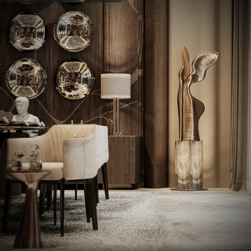 Layered Lighting: A low, tiered set of three pendant lights creates visual definition for the dining zone and adds a layer of architectural interest.