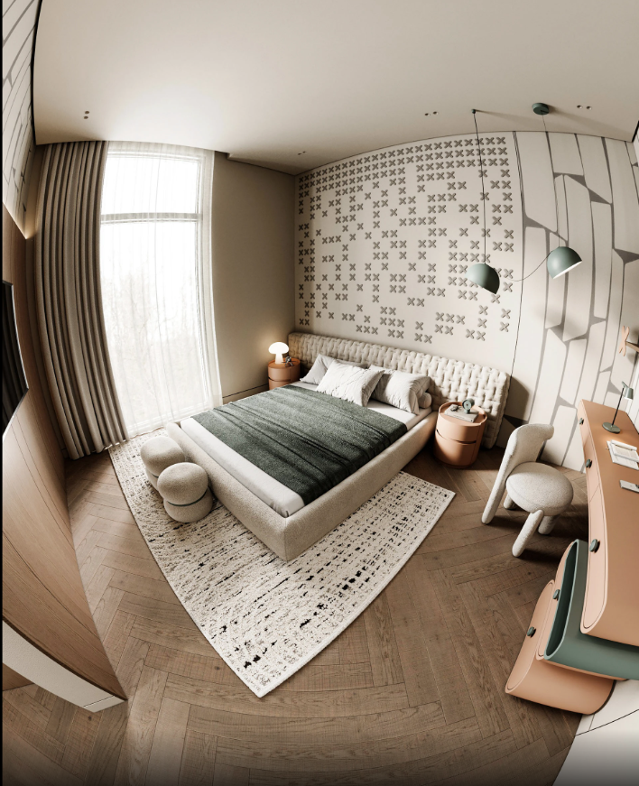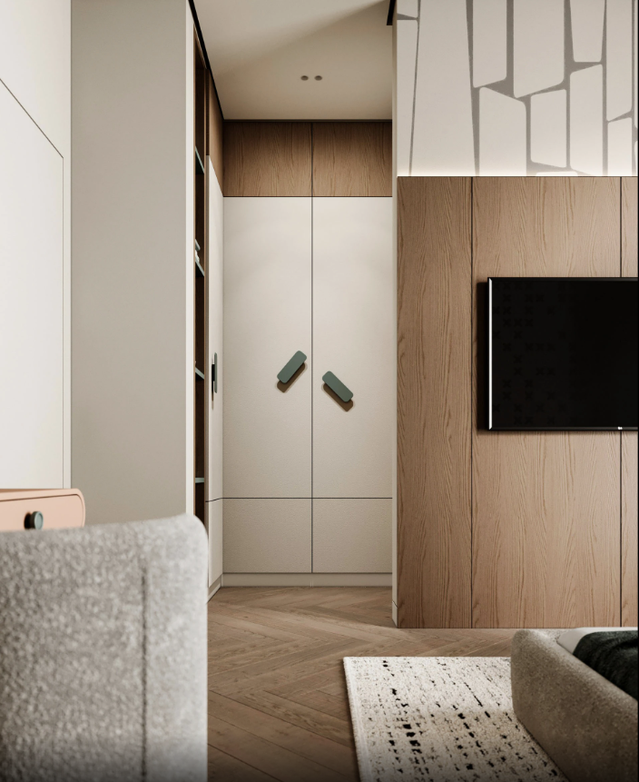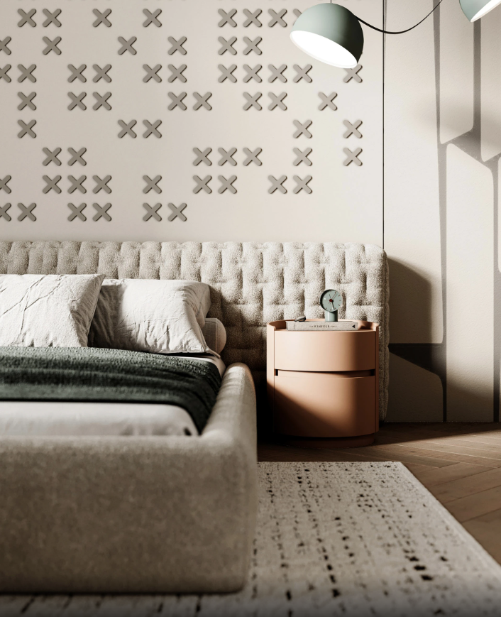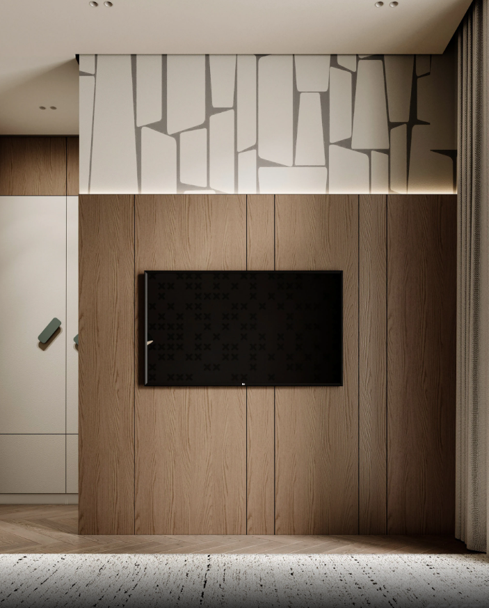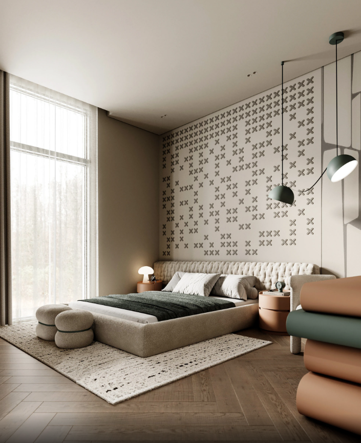 Architectural Texture: There is a vertical accent wall made of wooden slats behind the seating. This design element adds an additional layer of height as well as warmth, providing a high-end hotel type of background to your location while giving some legal privacy.