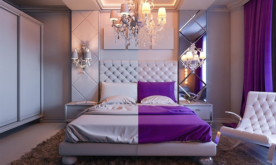 Lavender paired with white creates a dreamy and peaceful bedroom setting.